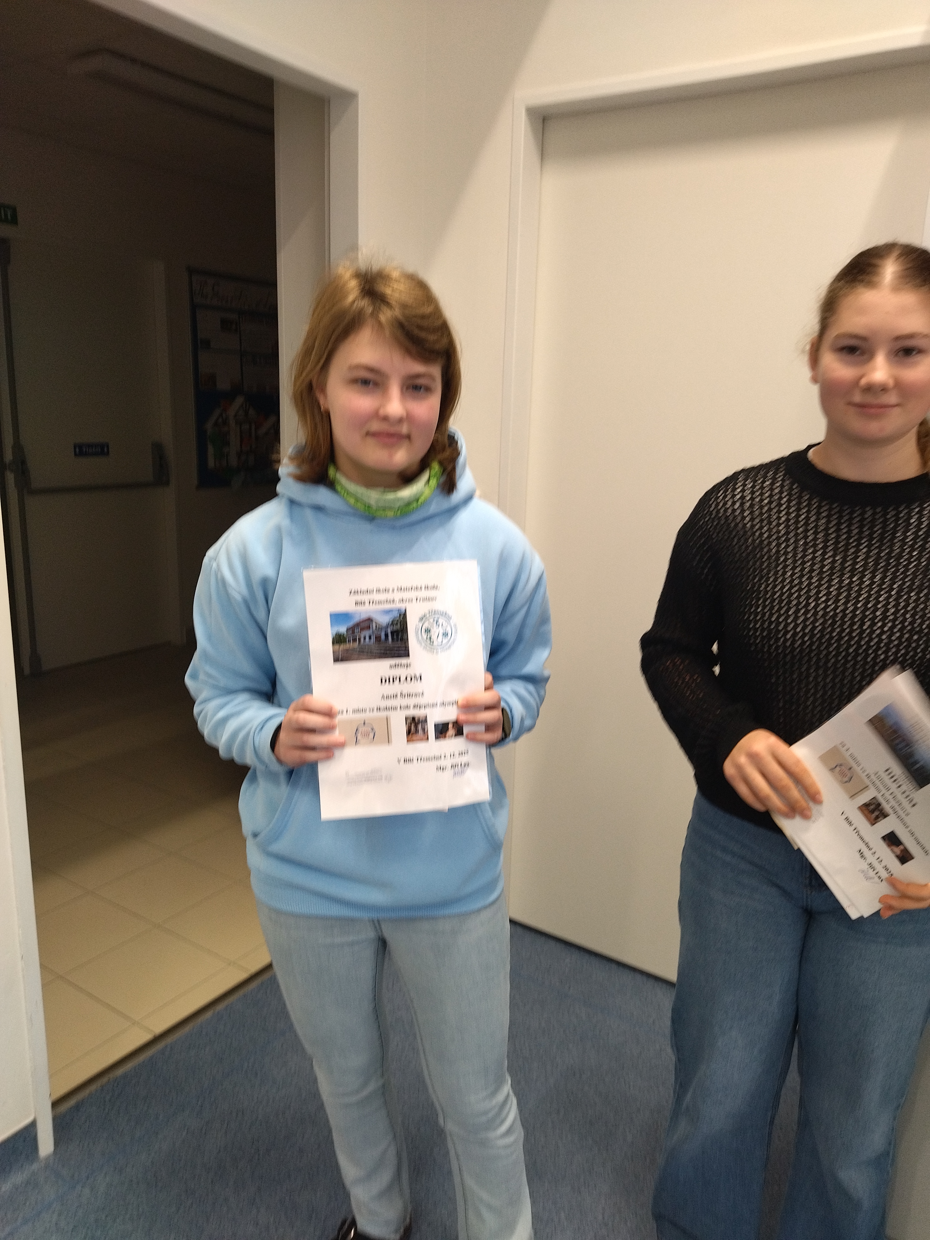 Konečně vítězkou se stala s 61 body žákyně 7.B Aneta Šritrová, která se po roční pauze vrací do okresního kola tentokrát v pozici našeho hlavního želízka v ohni, přestože je věkově stále řazena mezi benjamínky soutěže. Připomeňme její účast, když byla žákyní 5. třídy a divokou kartu na okresní klání, které jí bylo uděleno, protože dějepisná olympiáda je primárně určena pro žáky 8. a 9. tříd. Uvidíme, jak své zkušenosti v polovině ledna v tradičně silně obsazeném okrese zúročí.