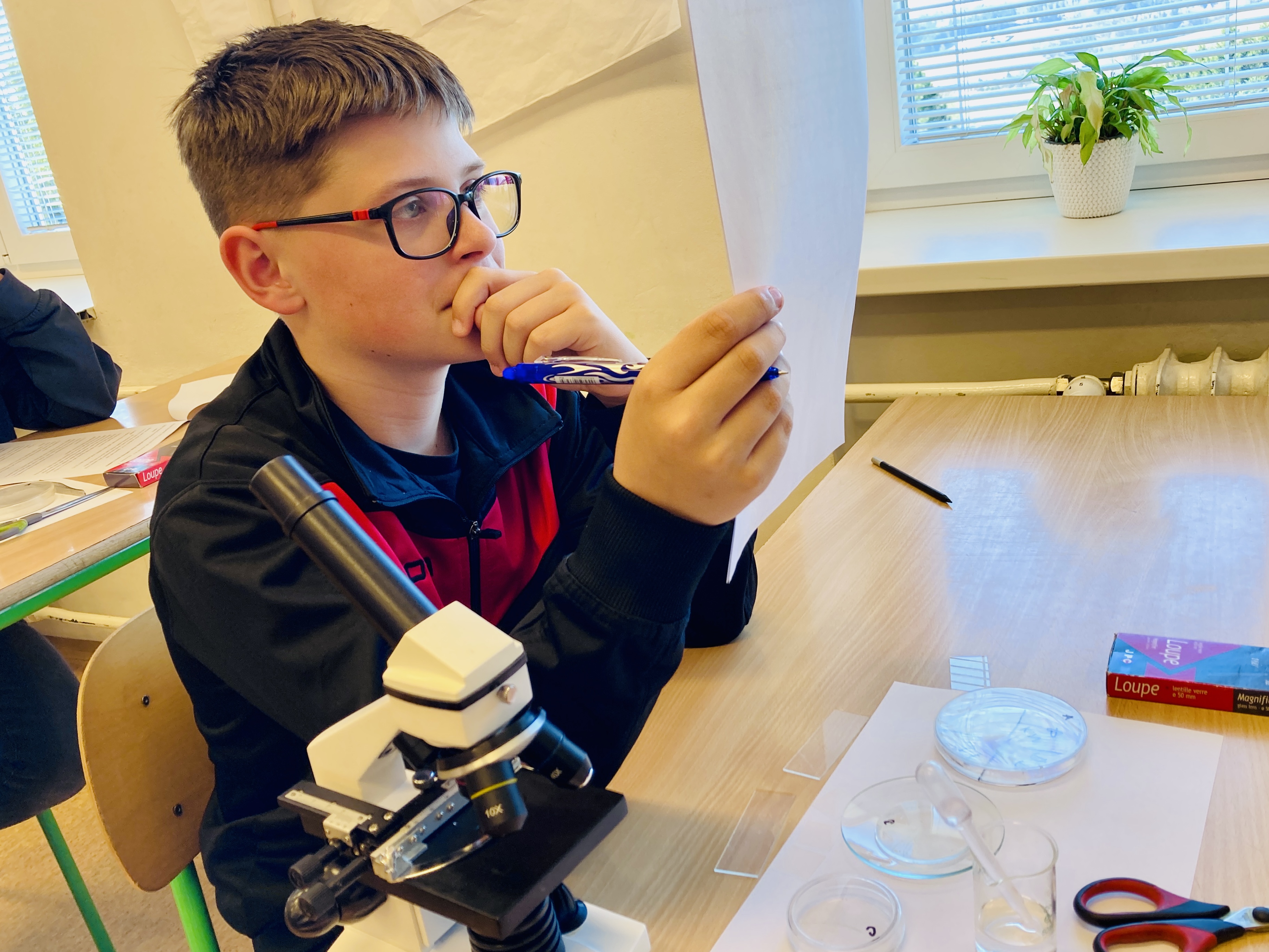 V Malých Svatoňovicích jsme tak již mohli poměřit síly v tradičním trojboji = test, poznávačka a laboratorní úkol. Vše se letos nešlo v duchu tématu "Tajemný život lesů" a v laboratoři na nás čekalo mikroskopické porovnávání a identifikace vláken.