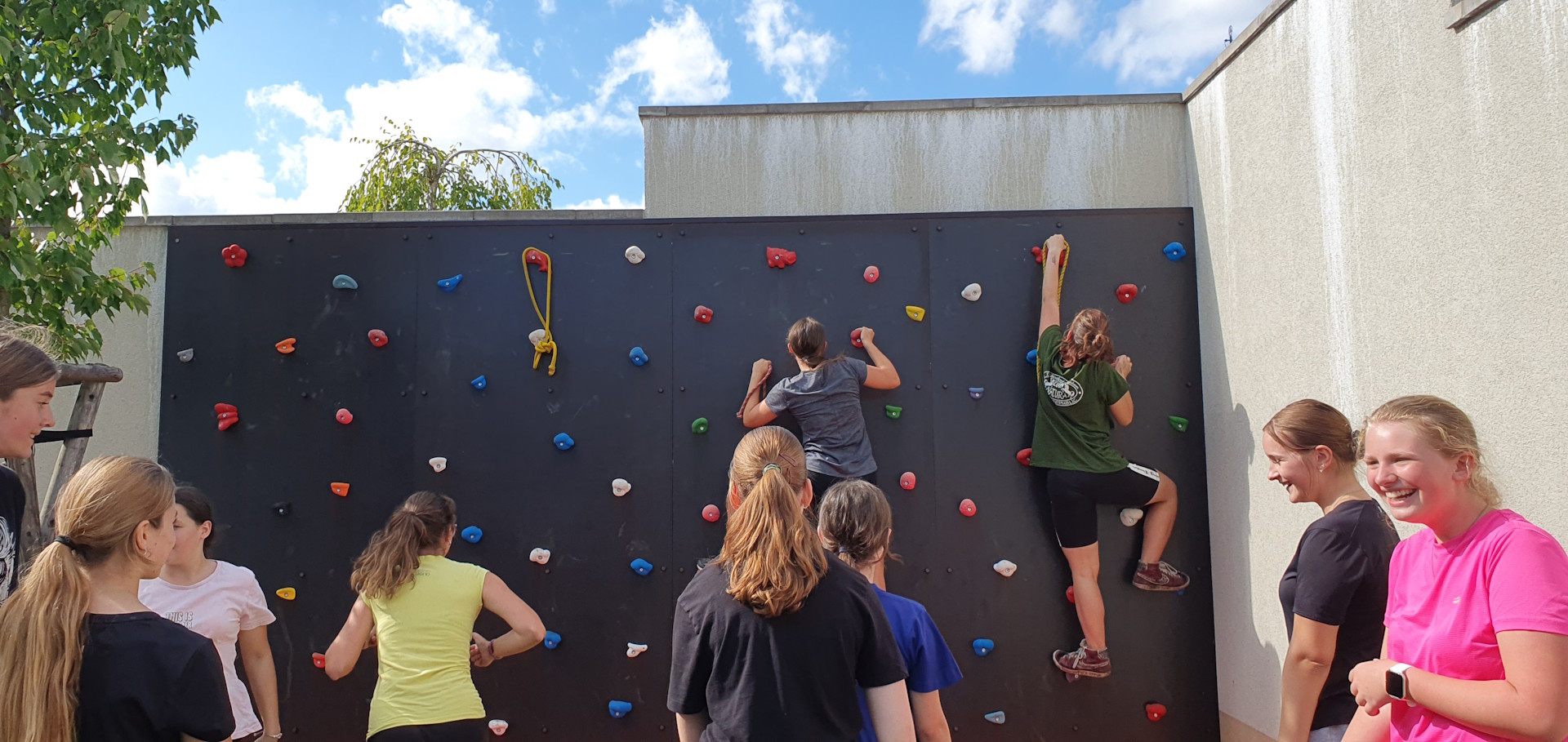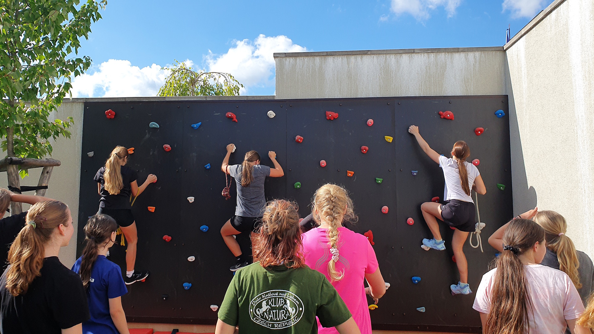 Už téměř všechny třídy si mohly během tělesné výchovy vyzkoušet nový prostor pro bouldering, ve kterém není potřeba jištění lanem. Pod bouldrem je vždy umístěna bezpečná dopadová plocha a děti se tak nemusí bát, že si ublíží. I když se může zdát, že jde jen o malý kousek stěny, dá se využít nejen na rychlostní traverzování, ale také lezeme s vynecháním konkrétních barev chytů, soutěžíme ve štafetách nebo traverzujeme poslepu.