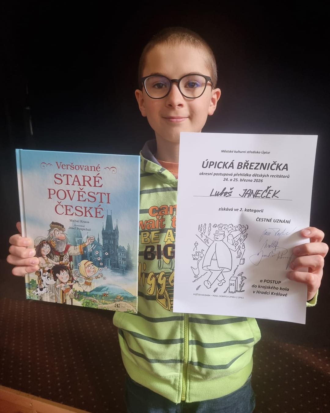 Úspěchy v okresním kole recitace Úpická březnička Soutěže